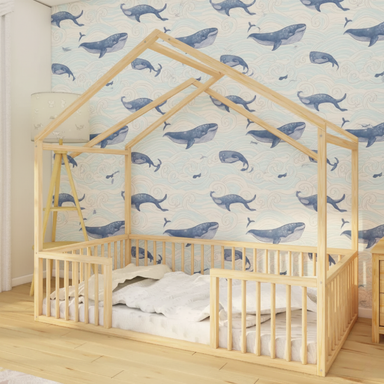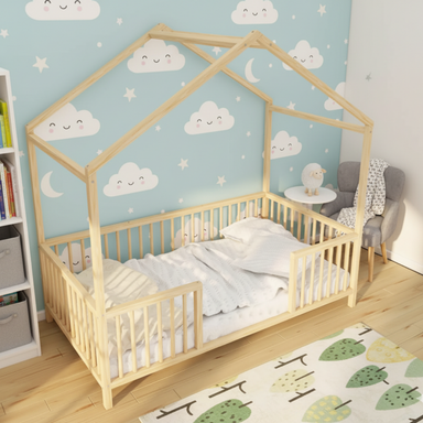 Nestly - Montessori Playhouse Floor Bed with Railings This model is produced in 3 different railing heights. 17" inch, 19" inch or 23" inch, you ca...