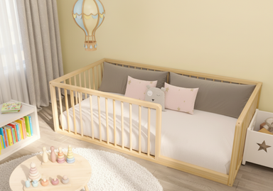 Mira Montessori Floor Bed with Cylindrical Railings This model is produced in 3 different heights. 17" inch, 19" inch or 23" inch, you can choose t...