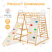 ● Monkey bars gymnastic rings climbing ladder climbing net climbing ladder rope ladder climbing rock and wooden swing for 4-5 kids to play at the same time● Large playing area for kids to better exercise their muscles● Reversible double-sided ramp(slide or climbing rock) for much convenience● Safe and reliable wood material for high durability and steadiness● Burr-free surface prevents kids from being scratched● Gripping stakes for easy climbing● Great for children to practice walking and climbing ● Solid connection for additional stabilityInstallation guide