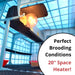 The incubator accommodates up to 216 quail eggs per batch and comes with egg turners and hatch baskets for efficient handling. During the first few weeks, the brooder provides consistent warmth with feeders and drinkers.
